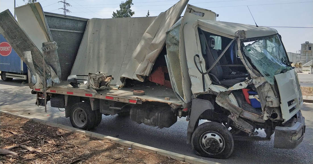Tras pinchar una rueda perdió el control del vehículo y colisiona con otro camión correctamente estacionado