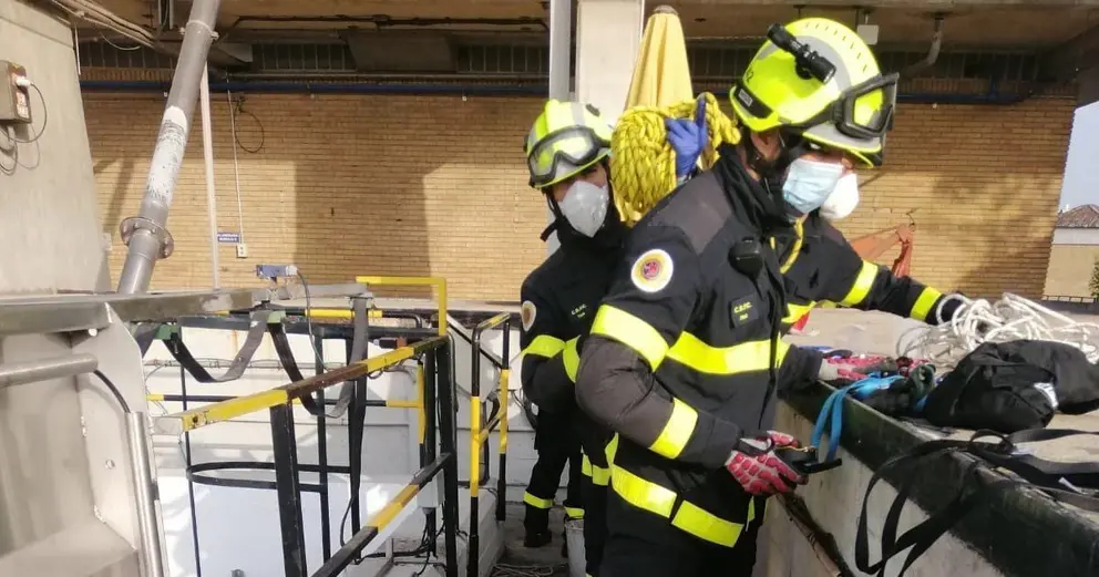 Para realizar el rescate, que comenzó a las 8,33 horas y finalizó a las 9,30 horas, los bomberos utilizaron un Newton en vertical. Asimismo, los efectivos acudieron con dos vehículos autobombas y un vehículo autoescala. Colaboraron también en el servicio agentes de la Policía Nacional y Policía Local.