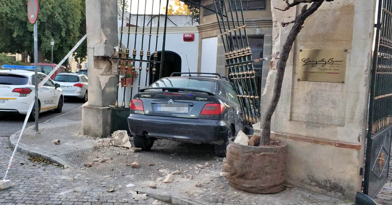 Un joven se estrella contra la puerta de González Byass triplicando la tasa de alcohol