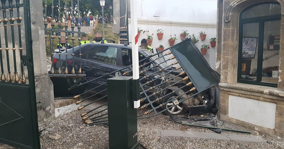 Un joven de 25 años de origen magrebí ha acabado estampándose con la entrada de la bodega Gonzalez Byass tras darse a la fuga al darle el alto agentes de la Policía Local.