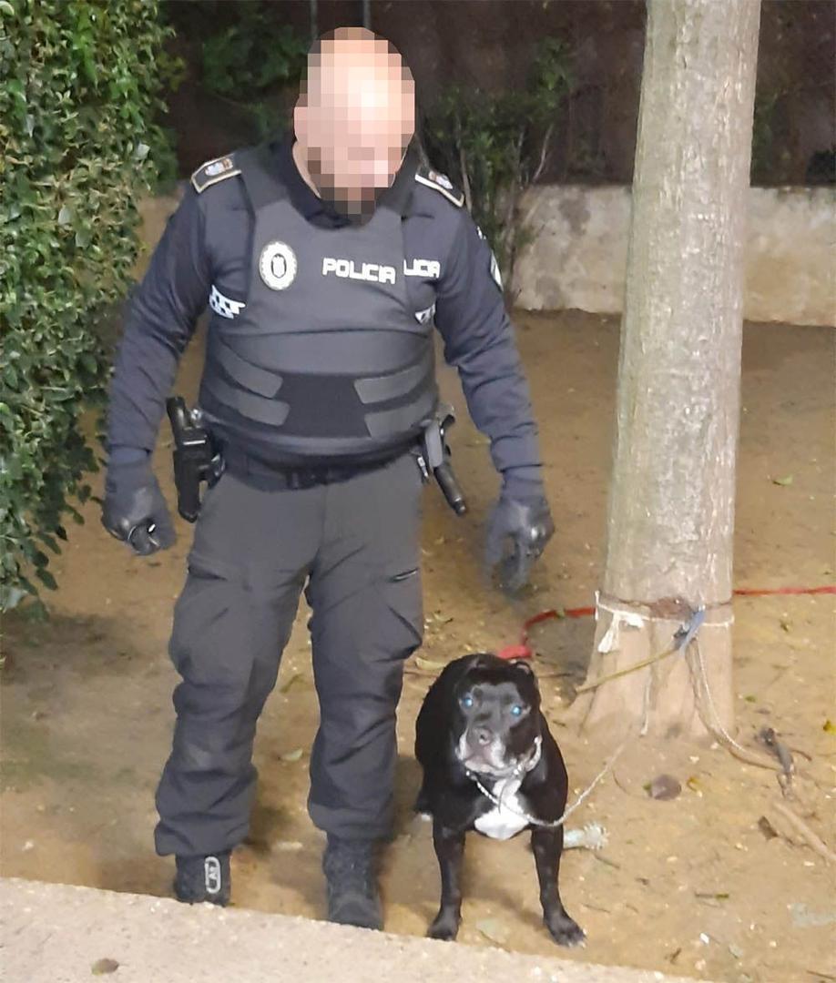 El perro fue trasladado por agentes de la Policía Local en un coche patrulla a la Jefatura