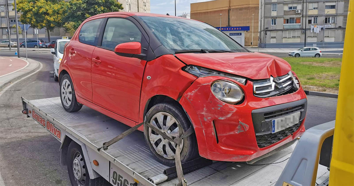 Entre los accidentados, un Citröen de color rojo se ha salido de la vía en la Avenida Reina Sofía, estampándose contra el muro