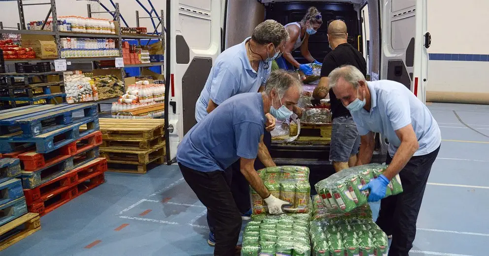 José Martínez, director-gerente de la empresa de producción, lavado y envasado de zanahorias, junto a Pilar Ruiz, han trasladado tal dotación a las instalaciones del polideportivo municipal ‘Kiko Narváez’ ubicado en la barriada La Granja y que se ha convertido desde marzo en el Centro Operativo municipal para la recepción y distribución de estos alimentos procedentes de las donaciones entre las familias más necesitadas.