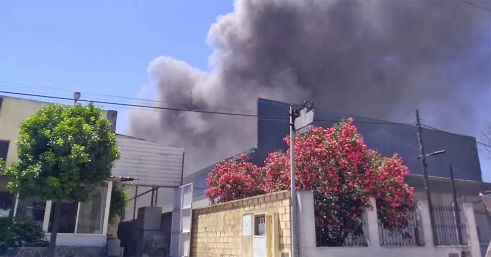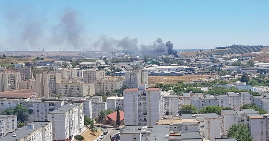 Gran dispositivo acude a sofocar las llamas que afectan a varias naves en el Polígono Industrial de El Portal e inundan de humo la zona sur de la ciudad