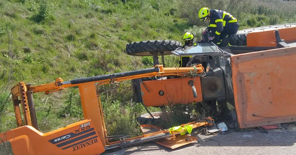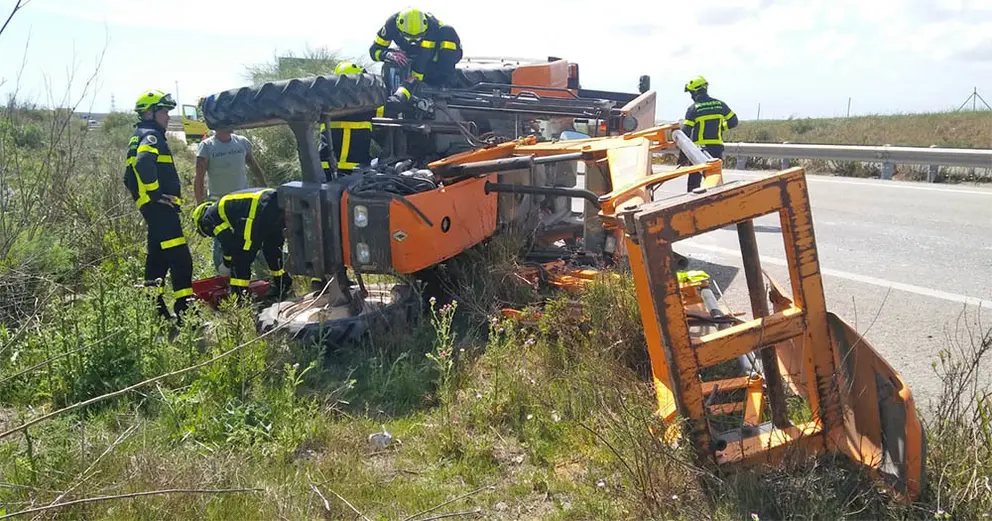 Bomberos del parque de Jerez han intervenido poco después de las cuatro de la tarde en un accidente que se ha producido tras el vuelco de un tractor en la N-IV, en dirección El Puerto de Santa María.