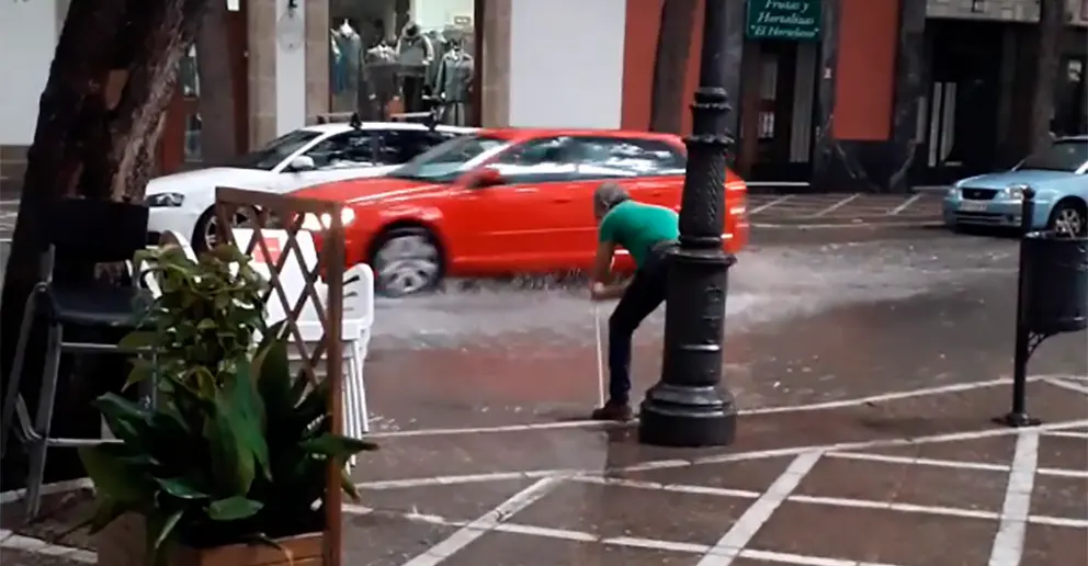 La precipitación fue intensa pero no duro mucho tiempo y algunos puntos de la ciudad, como la calle Porvera, se volvió a ver como el agua superaba los bordillos de la calzada.
