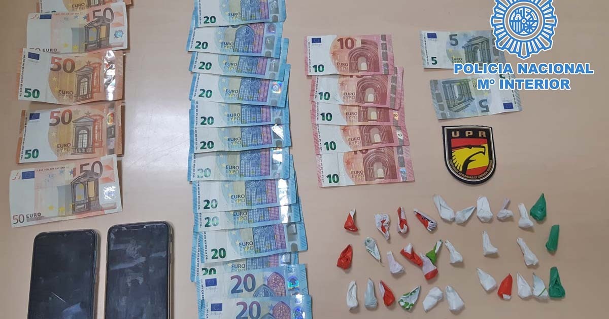 Ambos varones fueron interceptados por los agentes que, ante los hechos observados, procedieron a la detención del suministrador que portaba entre sus ropas trescientos euros en moneda fraccionada con objeto de facilitar las ventas y a la intervención de la sustancia que resultó ser de igual forma cocaína.