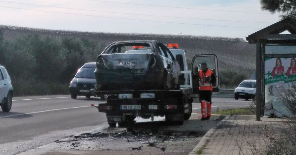 Coche en llamas mientras circulaba por Jerez