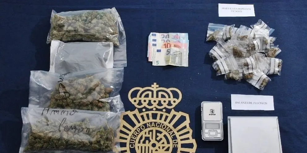 En el lugar han intervenido 336 gramos de marihuana distribuidas en 43 bolsitas listas para su venta y consumo, dos balanzas de precisión y 55 euros en efectivo, según han informado desde la Comisaría provincial a través de un comunicado.