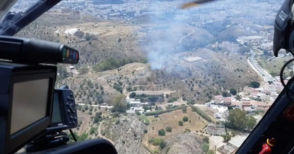Efectivos del Plan de Lucha contra los Incendios Forestales de la Comunidad de Andalucía (Plan Infoca) está trabajando para sofocar el fuego declarado en el Paraje Monte Coronado de Málaga capital.
