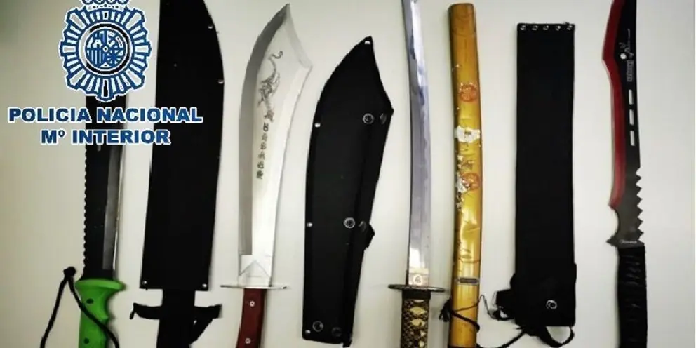 Los agentes estaban realizando un dispositivo de control de vehículos cuando dieron el alto a un coche ocupado por los hombres. Seguidamente procedieron a la identificación de todos ellos y en el registro del turismo encontraron tres navajas, un bate de beisbol, una catana y tres machetes.