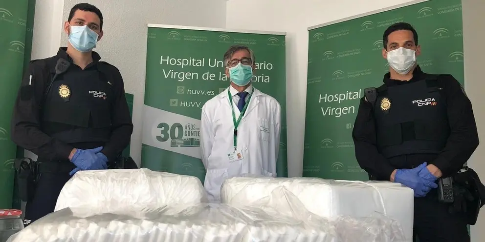 El Hospital Clínico Universitario Virgen de la Victoria de Málaga ha recibido este miércoles, a través de la Policía Nacional, una donación de material para uso sanitario procedente de la asociación solidaria Málaga Ayuda Hospitales. En concreto, se trata de unas 150 batas de protección de polipropileno.