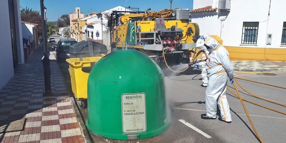 En concreto, los espacios en los que se han desplegado los equipos del Infoca son el exterior de la residencia de mayores, el entorno del centro de salud, la red viaria y acerado, así como el punto de aprovisionamiento de agua potable del municipio, en el que los vecinos se abastecen mediante un camión cisterna que llega diariamente.
