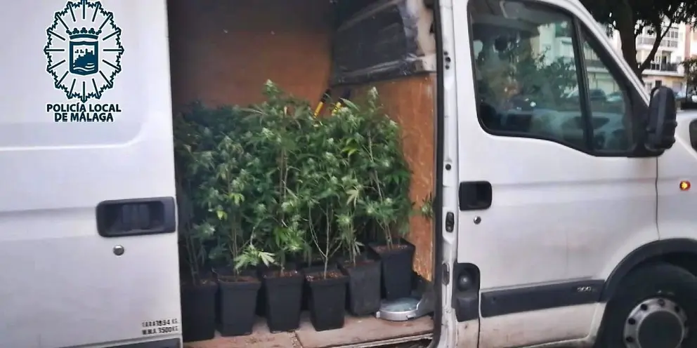 Efectivos del Grupo Operativo de Apoyo (GOA) de la Policía Local de Málaga han detenido a dos hombres por un delito de tráfico de drogas y han intervenido un total de 105 plantas de marihuana dentro de una furgoneta.