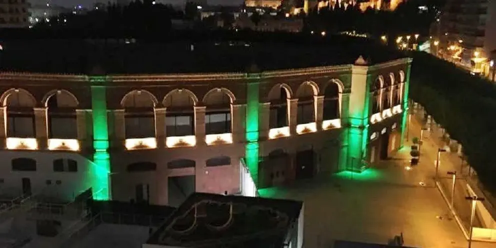 La Malagueta se ilumina de verde esperanza en honor a los sanitarios