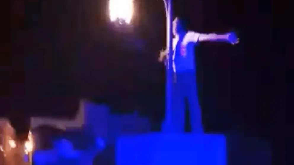 La actuación se prolongó durante varios minutos y justo antes de evitar que se lanzara, se vivieron los momentos más tensos. El susodicho soltó sus brazos de la farola y con los brazos en cruz expresó: "Te quiero Dios".