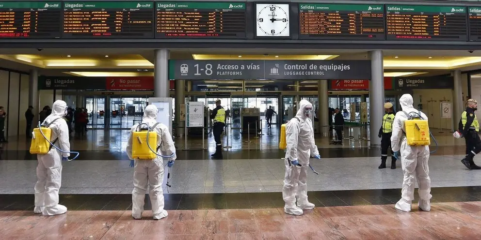 La UME desinfecta estación de tren, hospitales y residencias en Málaga