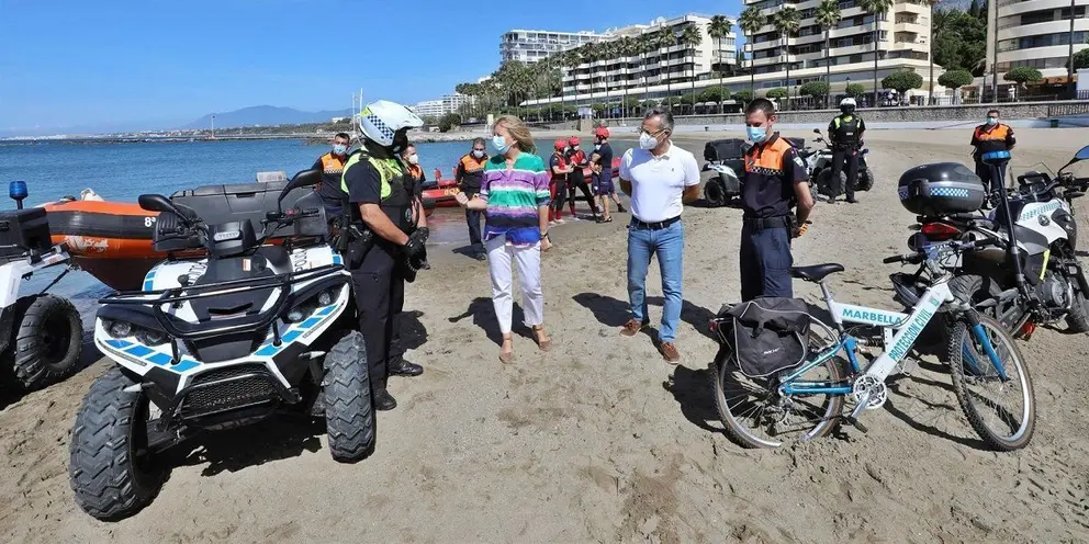 La alcaldesa de Marbella, Ángeles Muñoz, ha presentado el dispositivo en el que ha trabajado el Consistorio "para que se encuentren, en primer lugar, en perfecto estado de mantenimiento, tras el trabajo desarrollado por todos los servicios operativos y el área de Medio Ambiente y Playas".