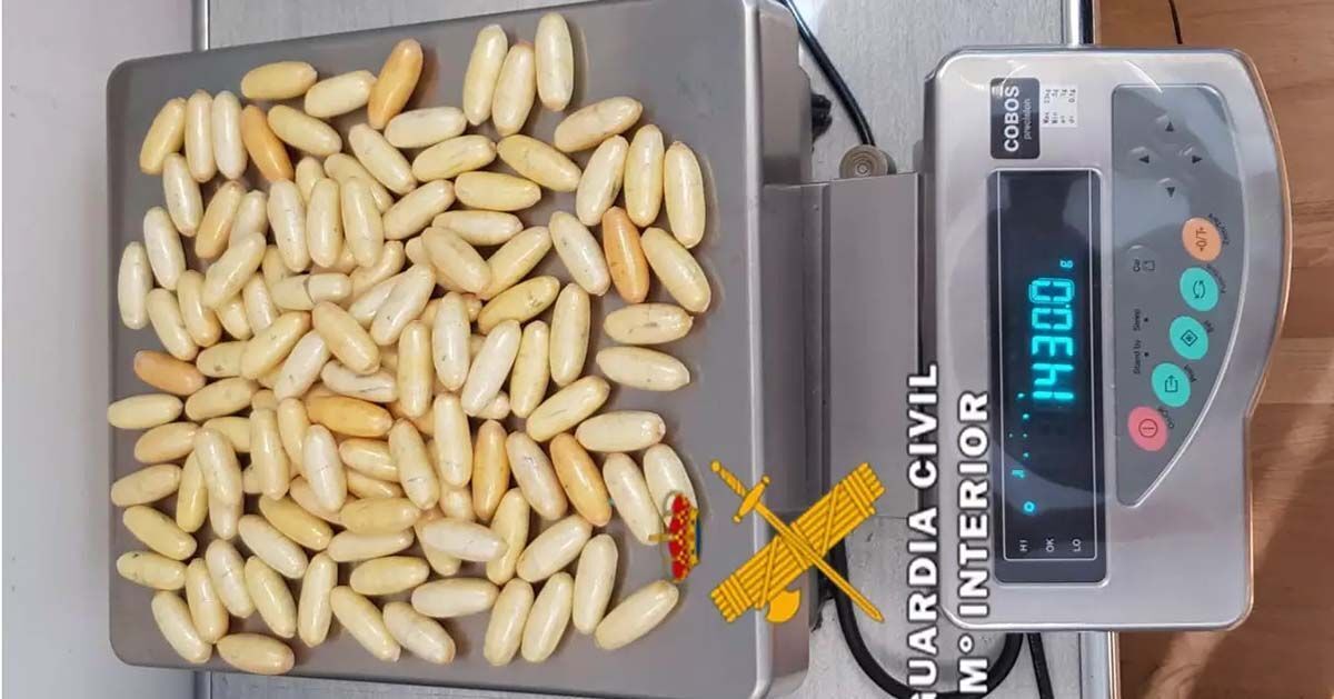 Una vez expulsadas de su organismo, se contabilizaron un total de 124 cápsulas que arrojaron un peso total de 1,430 kilogramos de una sustancia que resultó ser cocaína, por lo que procedió a su detención y puesta a disposición judicial.