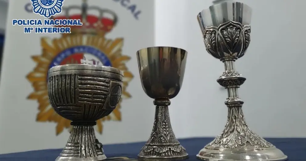 Los cálices, valorados en conjunto en 1.500 euros, han sido localizados en un establecimiento de compraventa de objetos de segunda mano.