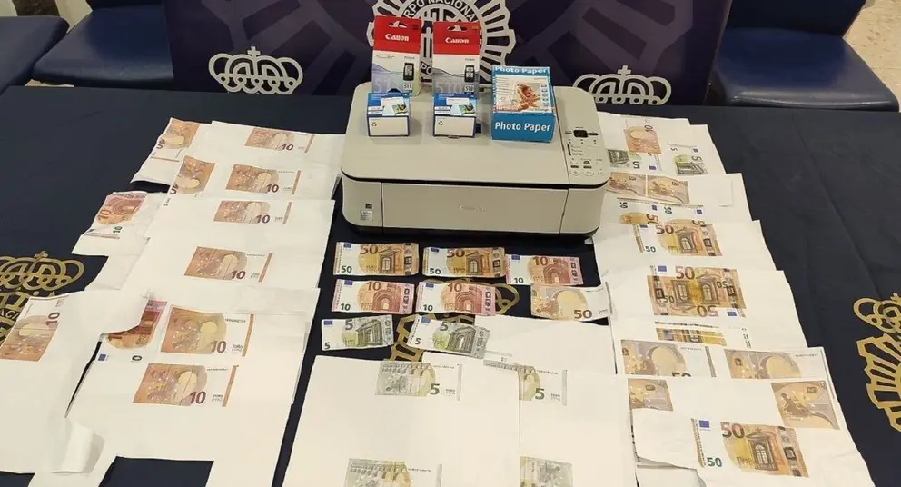 Fruto de la entrada y registro en el domicilio del arrestado, al que se accedió con su consentimiento, se intervinieron 140 euros falsos, en billetes de 50, diez y cinco euros, listos para darles salida; una veintena de fotocopias impresas que incluían la imagen de billetes de distinto valor; así como la logística para fabricarlos: impresora multifunción, papel para imprimir fotografía a color y cartuchos de tinta.