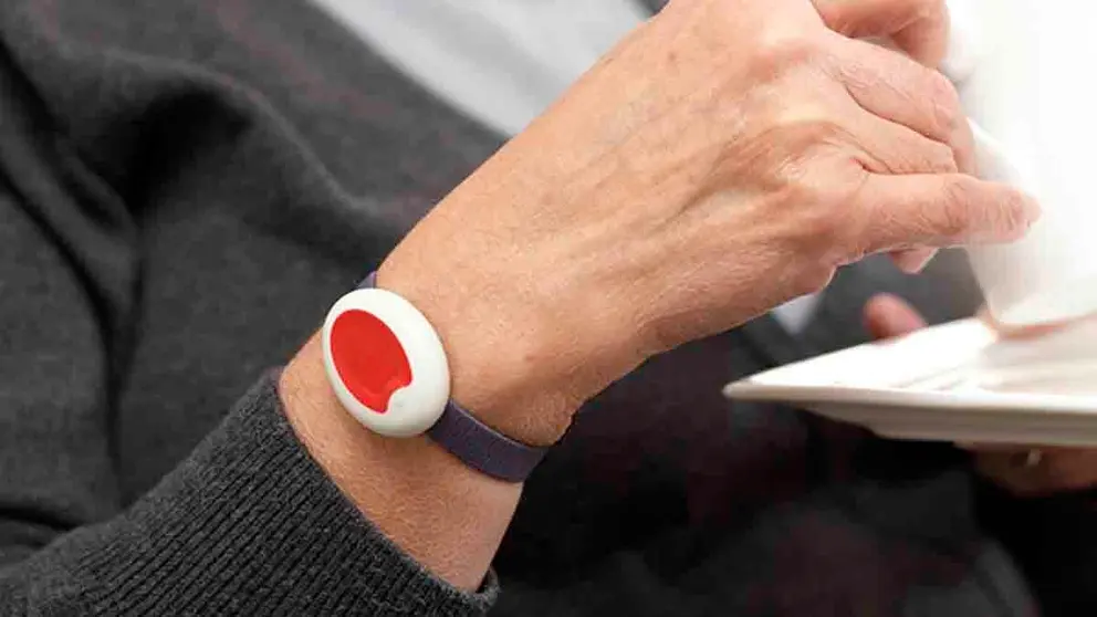 El pulsador, que puede llevarse colgado o en la muñeca, es importante tenerlo puesto siempre que estés en casa incluso en la ducha ya que es impermeable.
