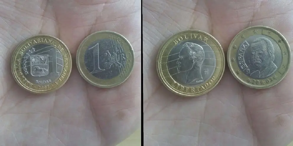 Todo esto viene a colación de la similitud existente entre ambas monedas, tanta que con el frenesí de las vacaciones muchos comerciantes aprovechan para timar a los consumidores, devolviéndole monedas de 1 bolívar en vez de 1 euro, siendo el valor real de la moneda bolivariana de 9 céntimos.