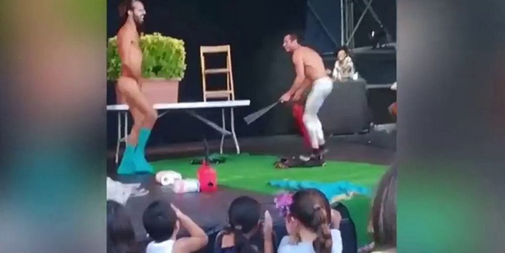 La obra acabó con dos actores en tanga, niñas tapándose la cara y padres vitoreando la escena