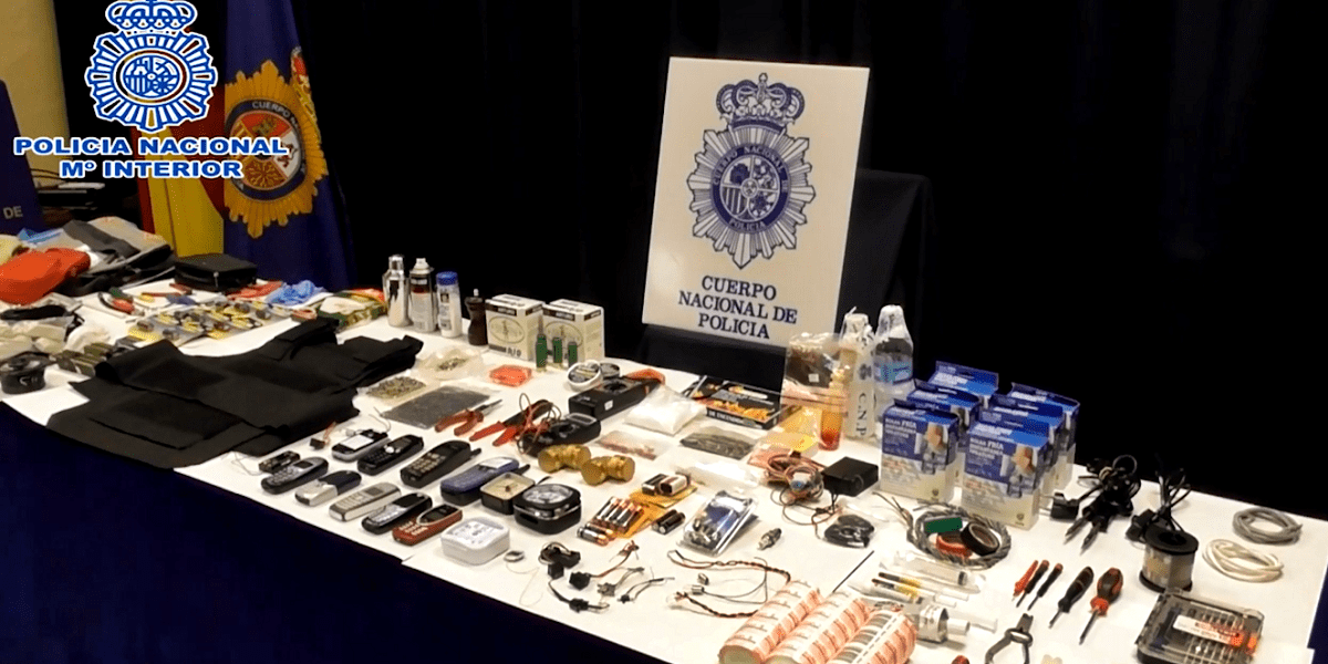 Además, se ha intervenido gran cantidad de material electrónico, teléfonos móviles manipulados, relojes modificados susceptibles de ser utilizados como temporizadores, una funda de chaleco antibala y una placa con balines adheridos a modo de metralla. Asimismo, se han hallado manuales manuscritos y croquis muy detallados sobre los pasos a seguir para la confección de artefactos explosivos improvisados.