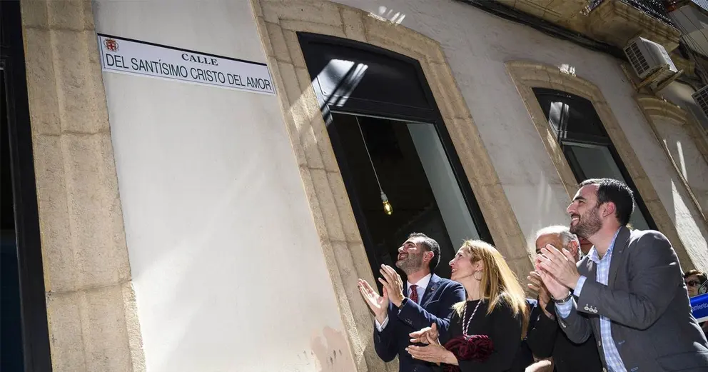 La hermana mayor del Amor, Dolores Fernández, ha agradecido en nombre de todos los hermanos el gesto del Ayuntamiento de la capital y el apoyo recibido por parte del alcalde a la petición realizada desde la Hermandad. Un gesto con el que, ha insistido, “se hace historia”, y permite que la calle Santísimo Cristo del Amor quede situada entre las calles Murcia y Alcalde Muñoz, junto a la salida de la procesión de los martes santos.