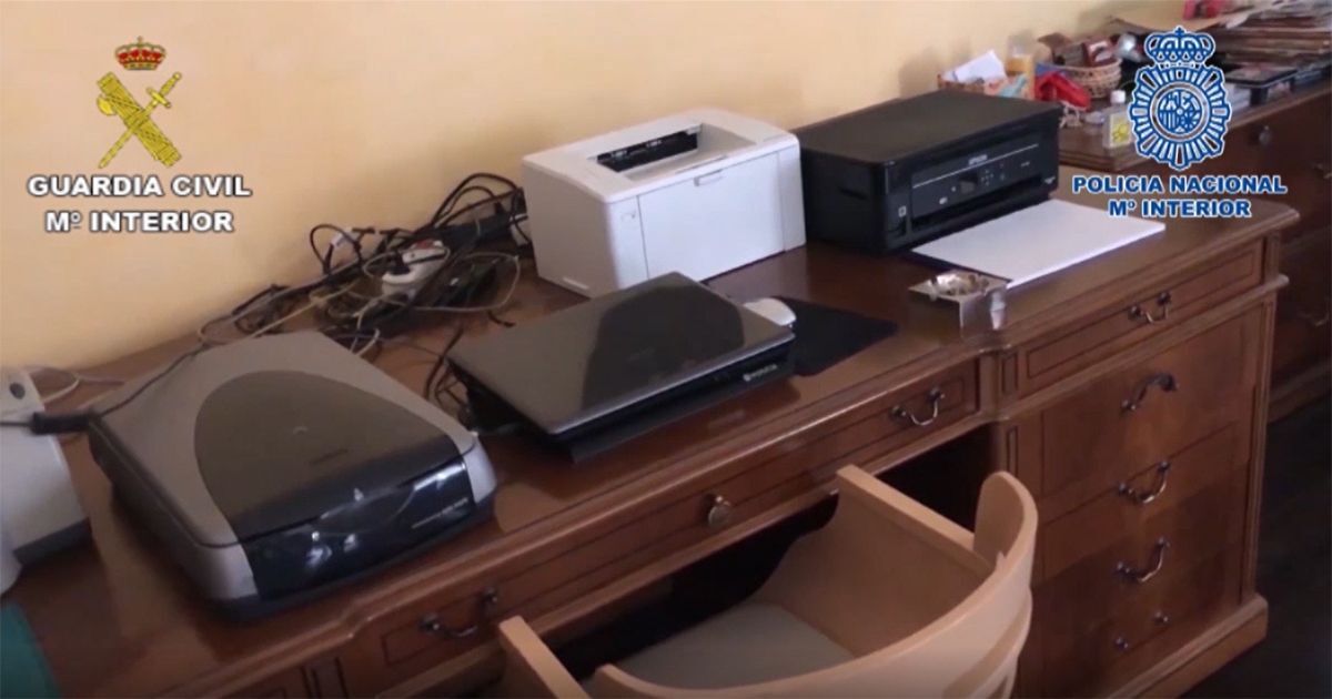 Las falsificaciones se realizaban en los “laboratorios”, acreditándose la existencia de, al menos, tres inmuebles dedicados a estos menesteres, cuya ubicación solamente era conocida por los “Jefes” de la organización. En ellos, durante los registros practicados, se localizaron ordenadores, impresoras y escáneres de máximas prestaciones tecnológicas, así como la correspondencia postal sustraída, documentos ya falsificados y listos para su uso, productos químicos, tintas luminiscentes y tampones preparados para simular las medidas de seguridad de los documentos mercantiles o de identidad, así como papel de calidad idéntica al utilizado para la emisión legalmente de los efectos financieros.
