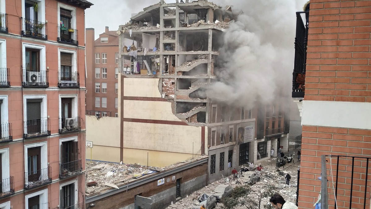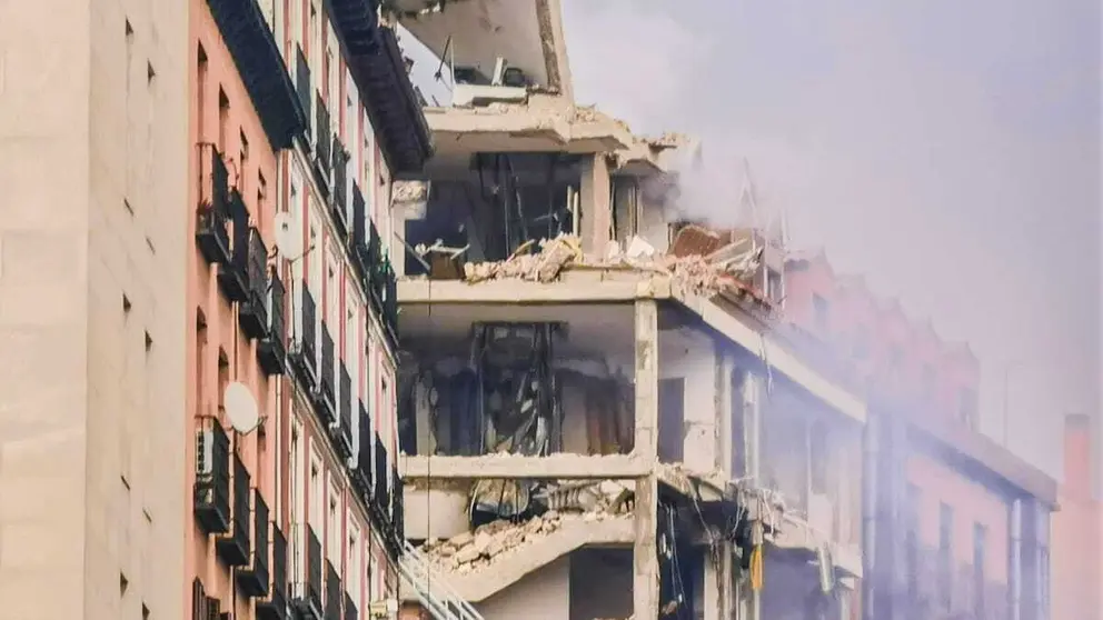 José Luis Martínez-Almeida ha indicado que la deflagración se ha debido a un escape de gas. Asimismo señala que ha destrozado al menos cuatro plantas de ese inmueble, que está en estos momentos incendiándose por dentro. No obstante, los Bomberos del Ayuntamiento no han entrado dentro porque se podría producir un embalsamiento de gas. Esta situación podría provocar que al acceder se derrumbe todo el edificio. Mantienen desde Bomberos que la idea es que se produzca una derrumbe controlado.