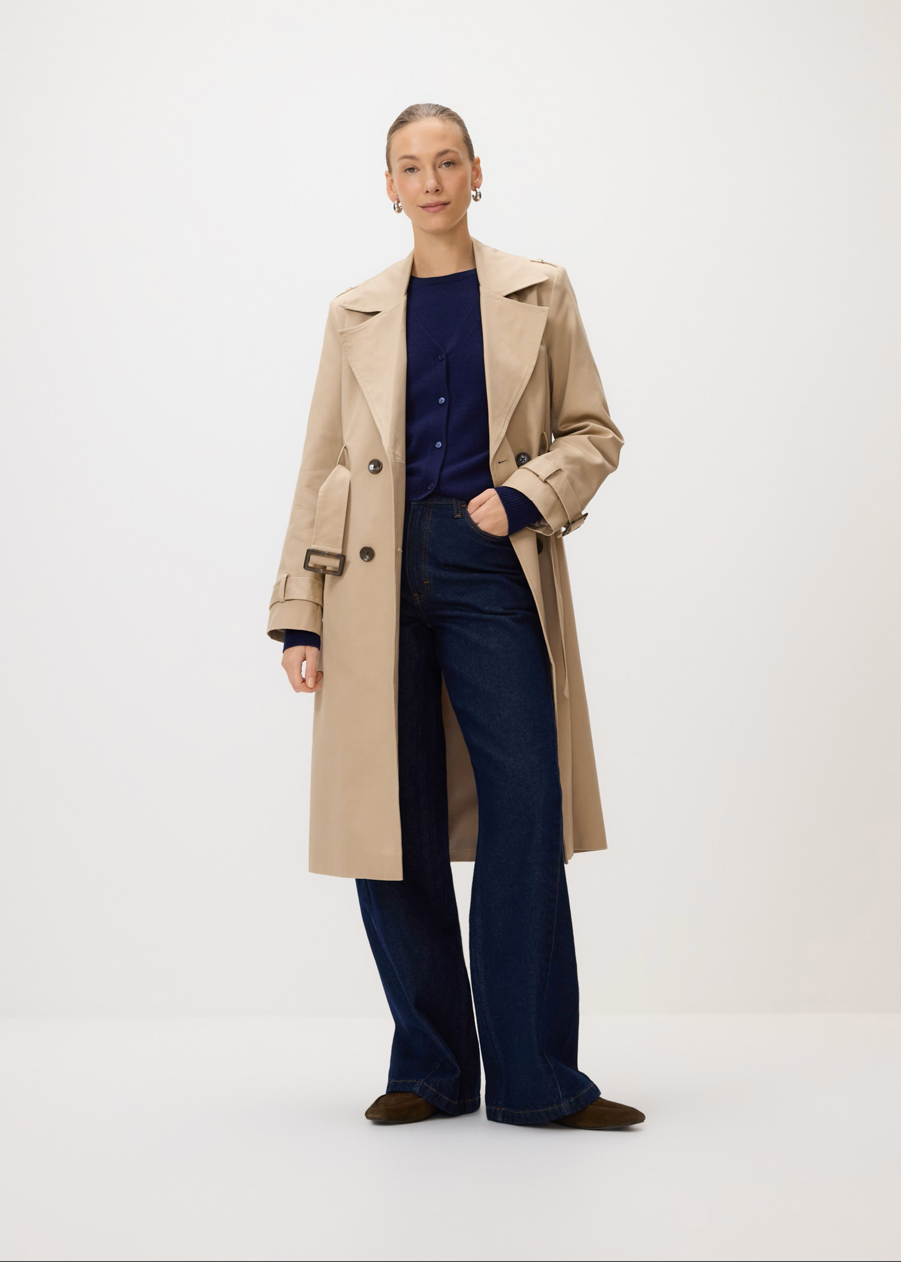 La gabardina es uno de los cortes más clásicos de abrigo. Confeccionada en un tejido ligero e impermeable, es perfecta para la primavera y el otoño. Sus características distintivas son el cierre de doble botonadura, el cinturón en la cintura y las hombreas. Es una elección ideal tanto para looks de negocios como casuales. La gabardina combina con pantalones elegantes, vestidos y faldas, así como con vaqueros, creando una gran variedad de estilismos.
