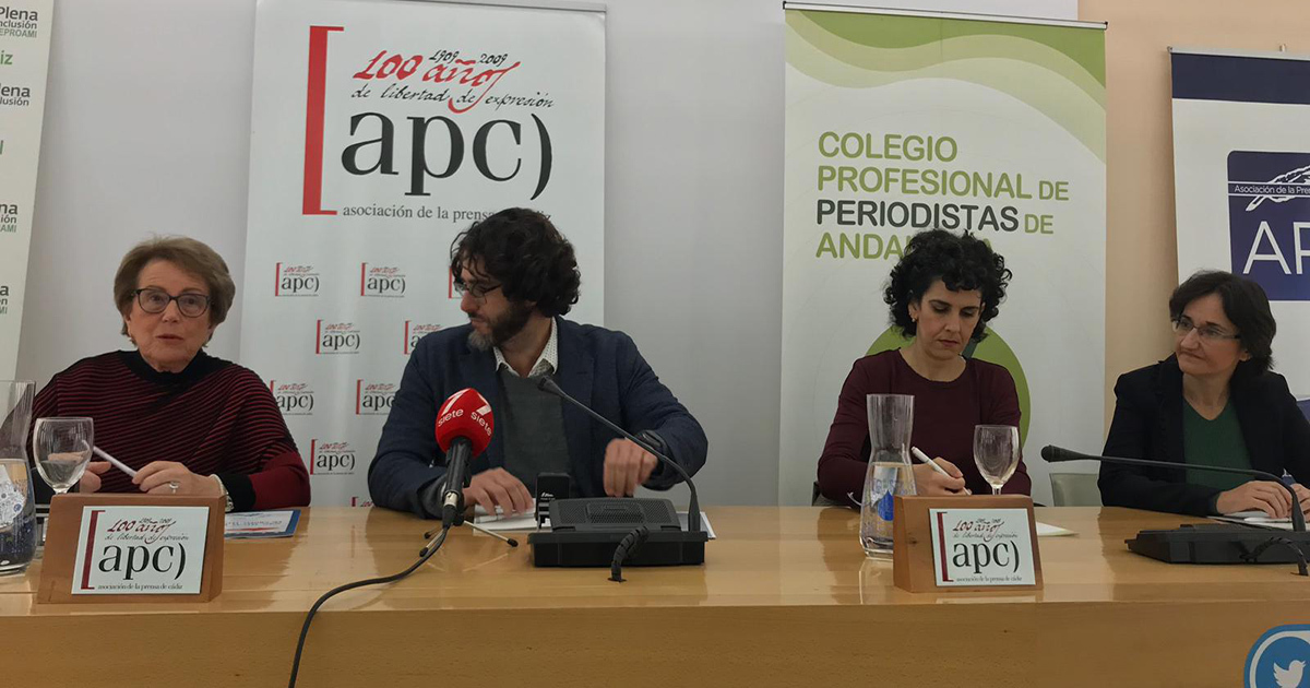 El presidente de la Asociación de la Prensa de Cádiz, Diego Calvo; la presidenta de la Asociación de la Prensa de Jerez, Amparo Bou; y la presidenta de la Demarcación de Cádiz del Colegio de Periodistas de Andalucía, Lorena Mejías, en representación del CPPA han apoyado la campaña y han presentado detalles de la misma. Todos han defendido la importancia de trabajar en la misma línea y de “recapacitar” a la hora de elaborar estas informaciones como parte de la responsabilidad social del periodismo.