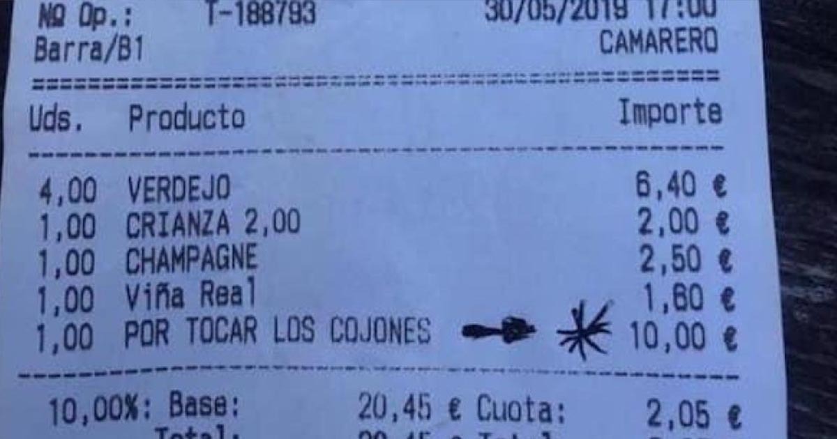 Y lo último que quedaba por ver. Suplemento extra ¡por tocar los cojones! Esto ha ocurrido en un bar de Vizcaya, el bar Eguzki. Un grupo de amigos quedó para comer como hacían habitualmente. La sorpresa y lo diferente a otras ocasiones llegó al recibir la cuenta en la mesa.