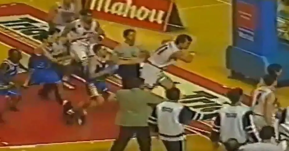 4 de diciembre, 25 años de una de las tanganas más recordadas del baloncesto ACB. Sucedió en un partido de liga entre el Real Madrid y el Coren Ourense.