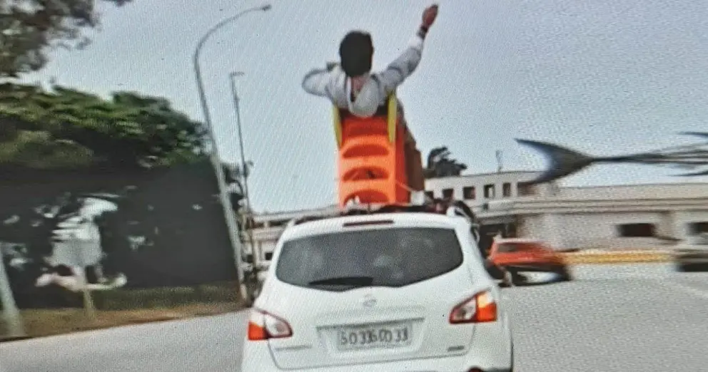 Los dos ocupantes del vehículo han sido denunciados tras ser grabados montados en el techo del coche subidos a un tobogán