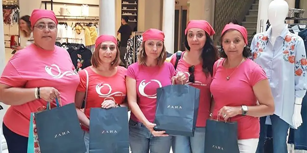 La Asociación de Mujeres Mastectomizadas se concentran en la tienda Zara de la calle larga para agradecer la contribución del empresario español
