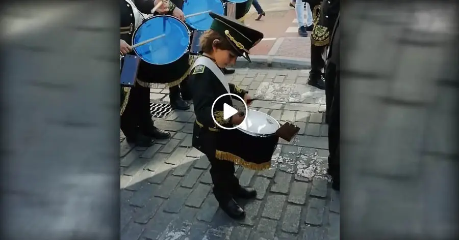 El pequeño Hugo ha participado esta Semana Santa como miembro de la Agrupación Musical Sentencia de Jerez, y como se puede ver en las imágenes, se ha convertido en todo un protagonista por su desparpajo y su arte, a pesar de su corta edad. Su madre, Vanessa Ferrer, ha publicado a su hijo en acción, y la imagen no ha tardado en viralizarse.