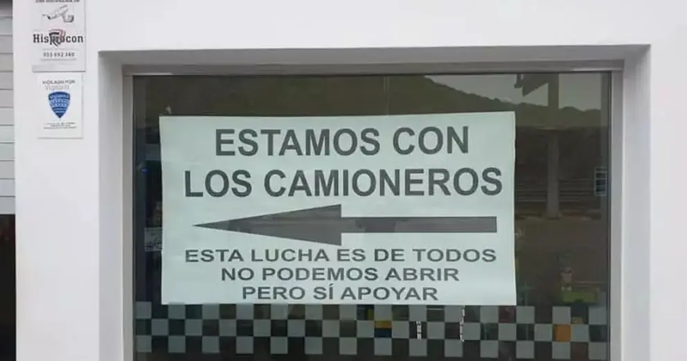 "Estamos con los camioneros. Esta lucha es de todos. No podemos abrir, pero sí apoyar. Transportistas autoservicio gratis. Por favor, coja lo que necesite. Es