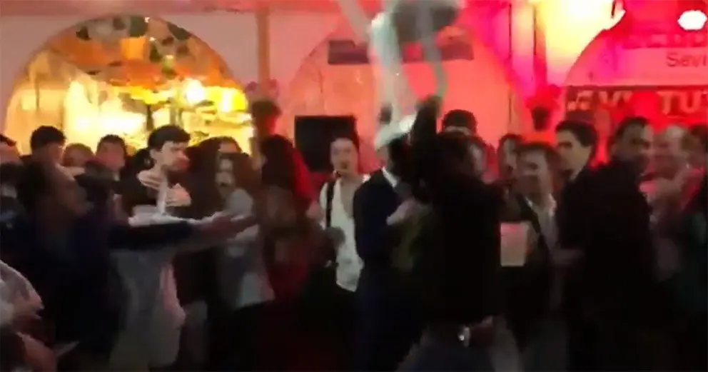 Una mujer se lleva un puñetazo al intentar separar a los dos hombres que empiezan la pelea y otra señora acaba chocando contra una mesa cuando la pelea le acaba alcanzado. La música siguió sonando y las luces de colores tampoco cesaron.