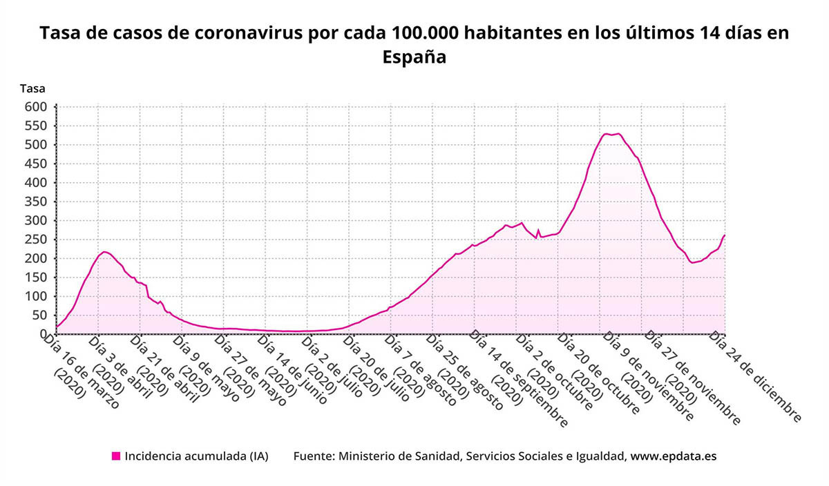Andalucía suma este jueves 24 de diciembre 1.087 casos de coronavirus Covid-19, cinco menos que la víspera y 296 menos que hace una semana, según datos de la Consejería de Salud y Familias consultados por Europa Press, que contabiliza 41 muertes, el dato más alto desde el sábado día 19, cuando hubo 55.