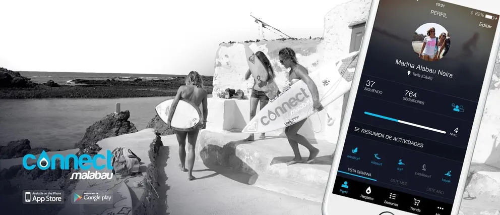 Los deportistas que practican Windsurf, Surf, Kitesurf, Paddlesurf y Kayak pueden, a través de la app gratuita Connect Malabau, compartir las sesiones y entrenamientos con foto, viento, olas y el material usado, interactuando en tiempo real con otros usuarios, desde cualquier playa de la provincia.