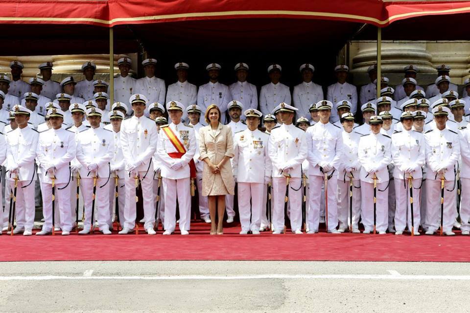 Los nuevos sargentos de la Armada finalizan hoy un periodo académico de tres cursos de duración. 144 de ellos pertenecen al Cuerpo General de la Armada, y 20 al Cuerpo de Infantería de Marina. Sus respectivos “números 1” (los dos alumnos que han obtenido las mejores calificaciones) han recibido como reconocimiento a ello la Cruz al Mérito Naval.