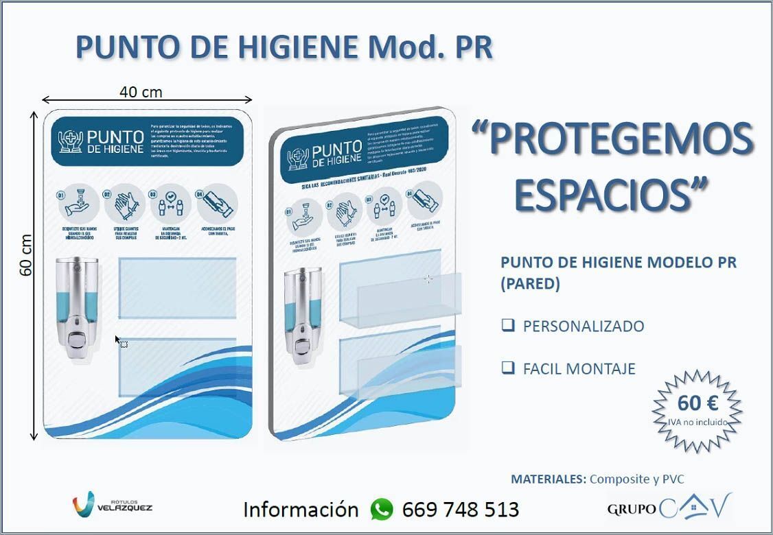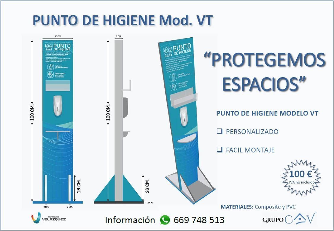 Así que rápidamente se pusieron manos a la Obra, tanto Antonio Cabeza de Vaca y su Equipo de CAV, quienes basan sus servicios en soluciones. En colaboración con una de las empresas que trabajan en muchos de sus Proyectos, “Rótulos Velázquez”, han diseñado el Primer Punto de Higiene.