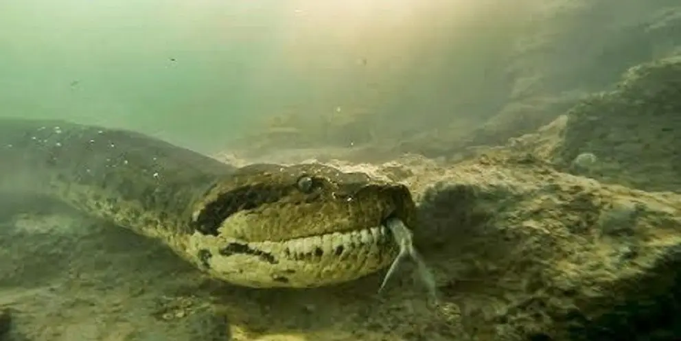 Dos buceadores filman a una anaconda de siete metros