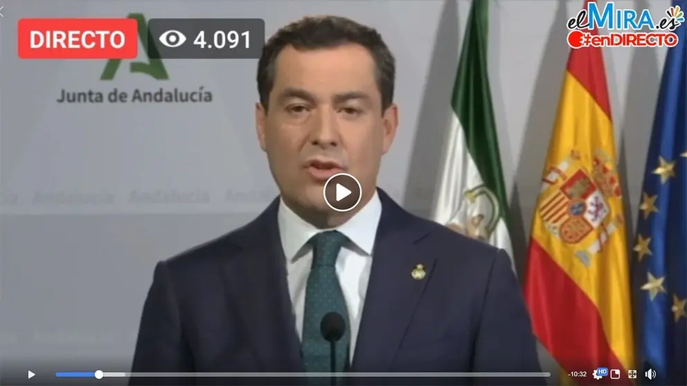 La cita era muy esperada, los andaluces estaban expectantes, necesitaban conocer que iba a ocurrir en los próximos días. Desde El MIRA pudieron ver en directo una intervención de poco más de 11 minutos del presidente de la Junta de Andalucía, Juanma Moreno. Hay que recordar que el líder popular presidió el miércoles en San Telmo la reunión del Comité de Expertos para analizar la situación de la pandemia Covid-19 y las posibles nuevas medidas para frenarla. Tras analizar los últimos datos del coronavirus la comunidad autónoma andaluza, el presidente trata con los expertos de frenar el avance de la pandemia. La decisión está tomada, el cierre de Andalucía.