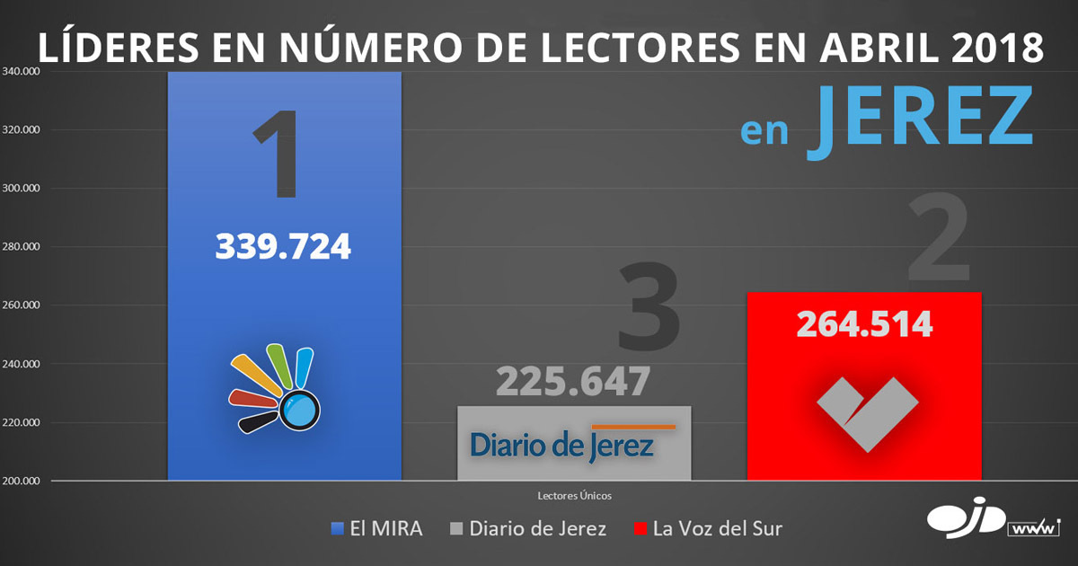 Los lectores, según los datos reflejados en la Auditora OJD, eligen en mayor número a elMIRA.es para informarse de la actualidad de sus localidades de la provincia de Cádiz, con un total de 339.724 lectores diferentes durante el mes de abril, muy por encima del resto de medios auditados en Jerez. Entre los medios de la provincia se coloca en tercera posición, escasamente por detrás de CádizDirecto.com (356.285) y del Diario de Cádiz (510.740).