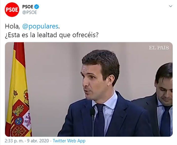Las redes sociales han comenzado a arder literalmente tras la publicación de un tweet en la tarde del jueves por parte del PSOE en la que achacan al PP y a Pablo Casado falta de lealtad con el Gobierno ante la crisis provocada por el Coronavirus en España.