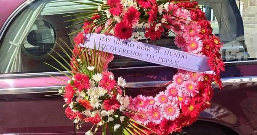 Una corona de flores ha recordado lo importante que ha sido para muchas personas durante el duro confinamiento, encerrados en casa: "Has hecho reír al mundo, te queremos Tía Pepa".